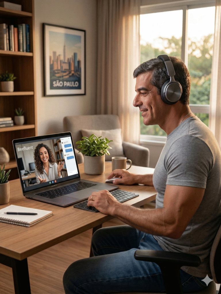A Braskem apresenta o curso de inglês da Beefluent — uma metodologia inovadora que combina tecnologia avançada com acompanhamento humano para acelerar sua fluência.